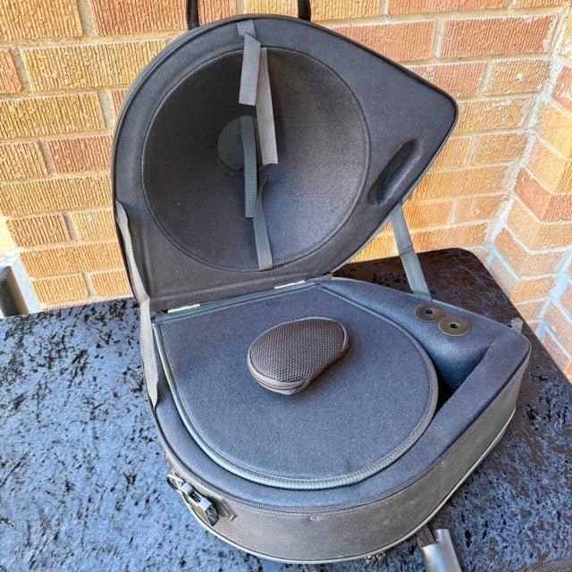 A Bags of Spain french horn case, with a Ricco Kuhn badge on the front. Designed for most Ricco Kuhn horn models and other Knopf wraps. Does not fit Yamaha brand horns, but some smaller Geyer and Kruspe wraps may fit. Please view our Case Fitment Chart.