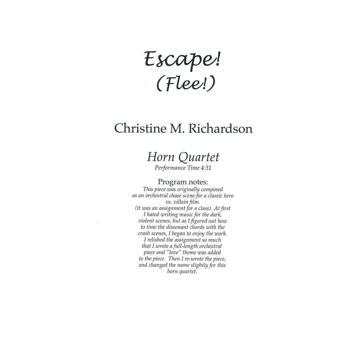 This piece was originally composed as an orchestral chase scene for a classic hero vs. villain film. (It was an assignment for a class.) At first I hated writing music for the dark, violent scenes, but as I figured out how to time the dissonant chords with the crash scenes, I began to enjoy the work. I relished the assignment so much that I wrote a full-length orchestral piece and the "love" theme was added to the piece. Then I re-wrote the piece, and changed the name slightly for this horn quartet.