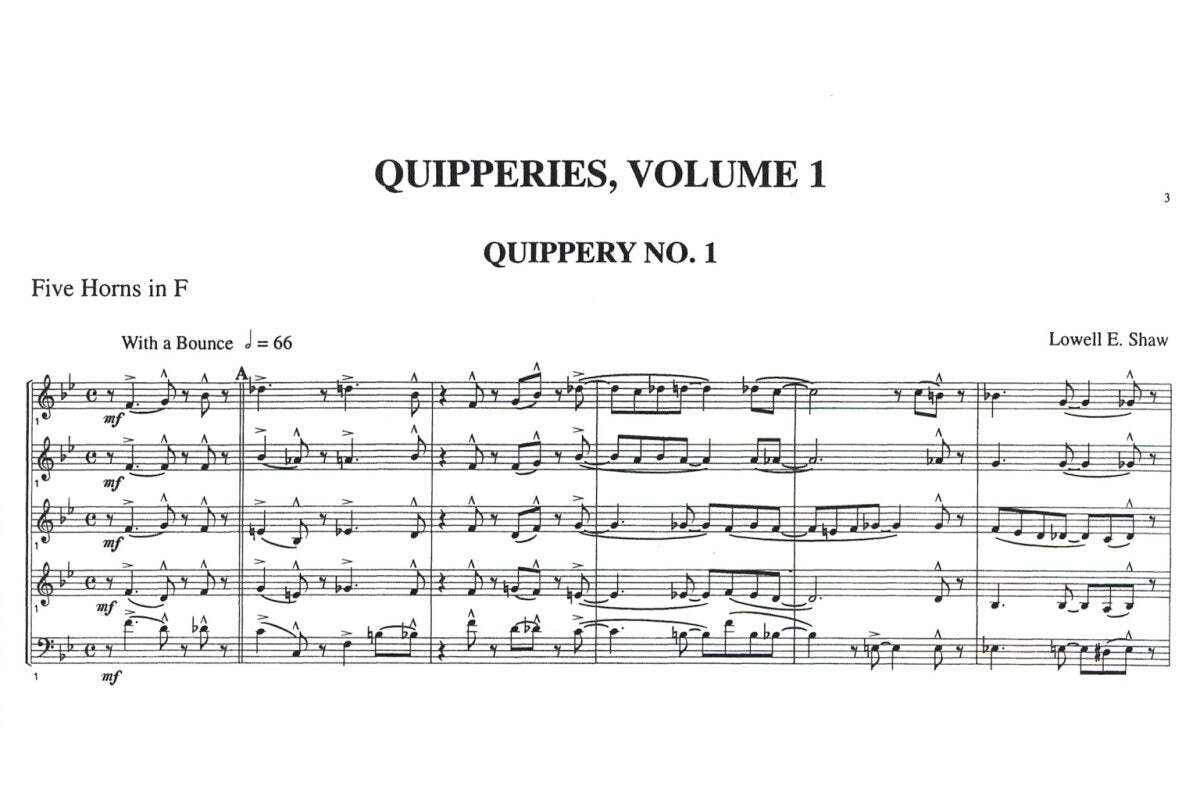 Quipperies - Volume 1, Nos.1-4, Shaw, Lowell E. 1992. For horn quintet.