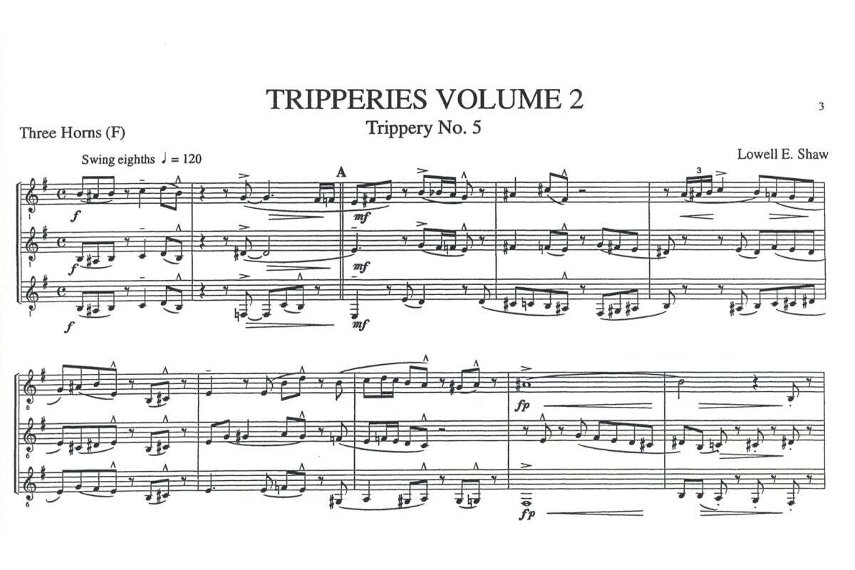 For horn trio. Fun little ditties to enjoy on your horn. Includes Tripperies Nos. 5-8.