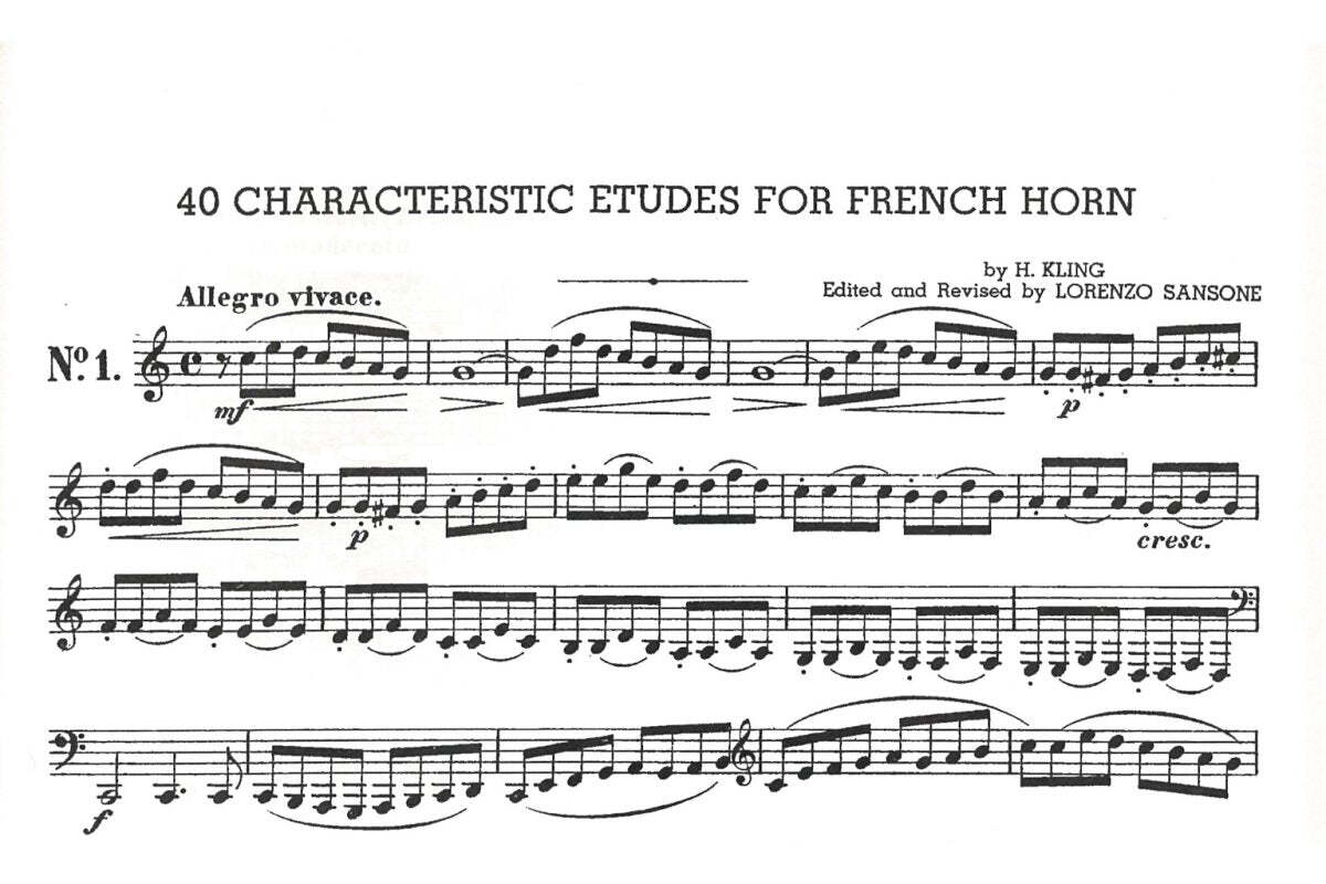 These etudes were composed by Henri Adrien Louis Kling to assist in the mastery of French horn playing. Noted horn player, teacher, and designer Lorenzo Sansone has assembled this collection to help the developing French horn player/student progress.