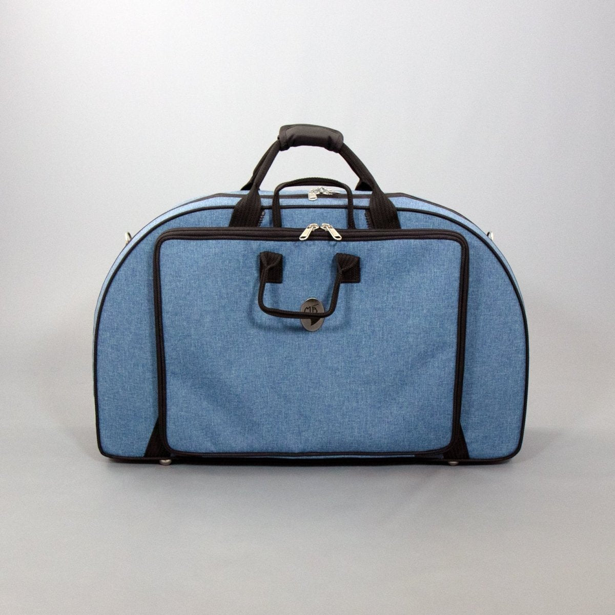 We really like this case for car travel, as it has a flat profile that is easy to pack in between other pieces of luggage, unlike other cases with a lot of rounded surfaces or curves. At 24 inches, it is technically slightly too wide for an airplane carry-on, but you can probably get away with carrying it on any airplane that doesn't measure carry-ons. And it's incredibly roomy inside! There's straps for a straight mute and a stop mute, a pouch for oils underneath the bell, and a large compartment for holding a tuner and other accessories. It's a great case for anyone who spends a lot of time on the road.