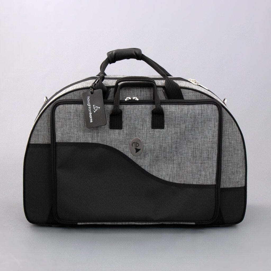 This case is incredibly roomy inside! It has straps for a straight mute and a stop mute, a bag for oils underneath the bell, and a large compartment for tuners and other accessories. Plus on the outside you can fit a sheet music and small laptop or tablet in the zippered pouch. It comes with two backpack straps and a mouthpiece pouch. At 22 in long, it qualifies as a carryon for most airlines, and its flat profile means it is easy to pack in a car among other luggage. A great case for a frequent traveler!