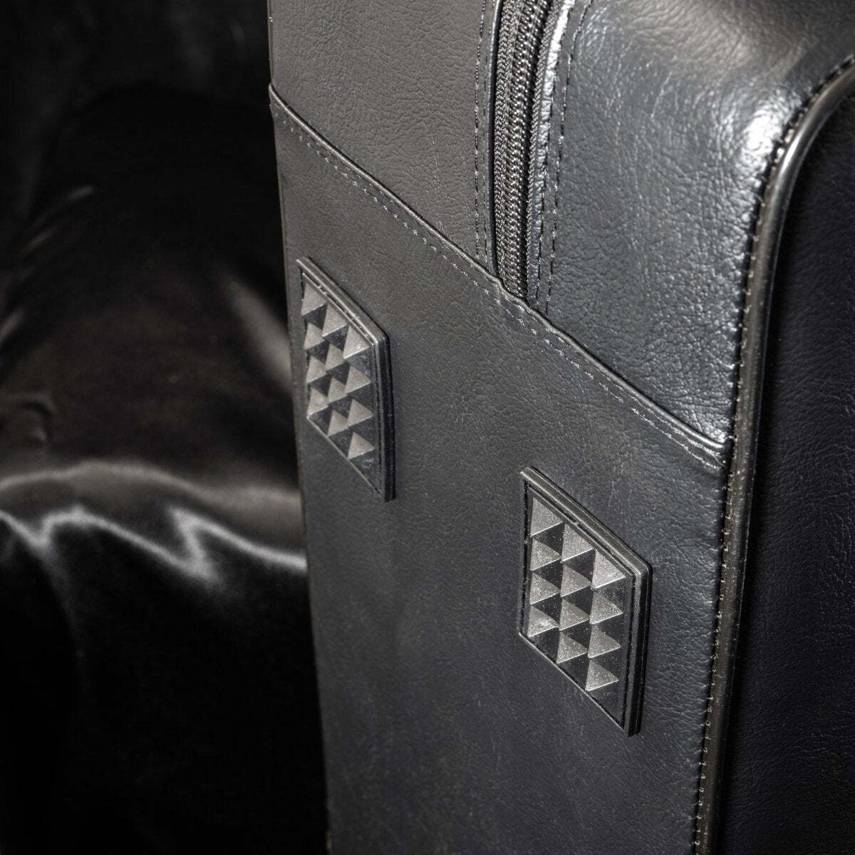 - New Zippered briefcase-style case (Backpack straps, lighter fiberglass shell, rubber feet, does not meet airline sizing requirements)