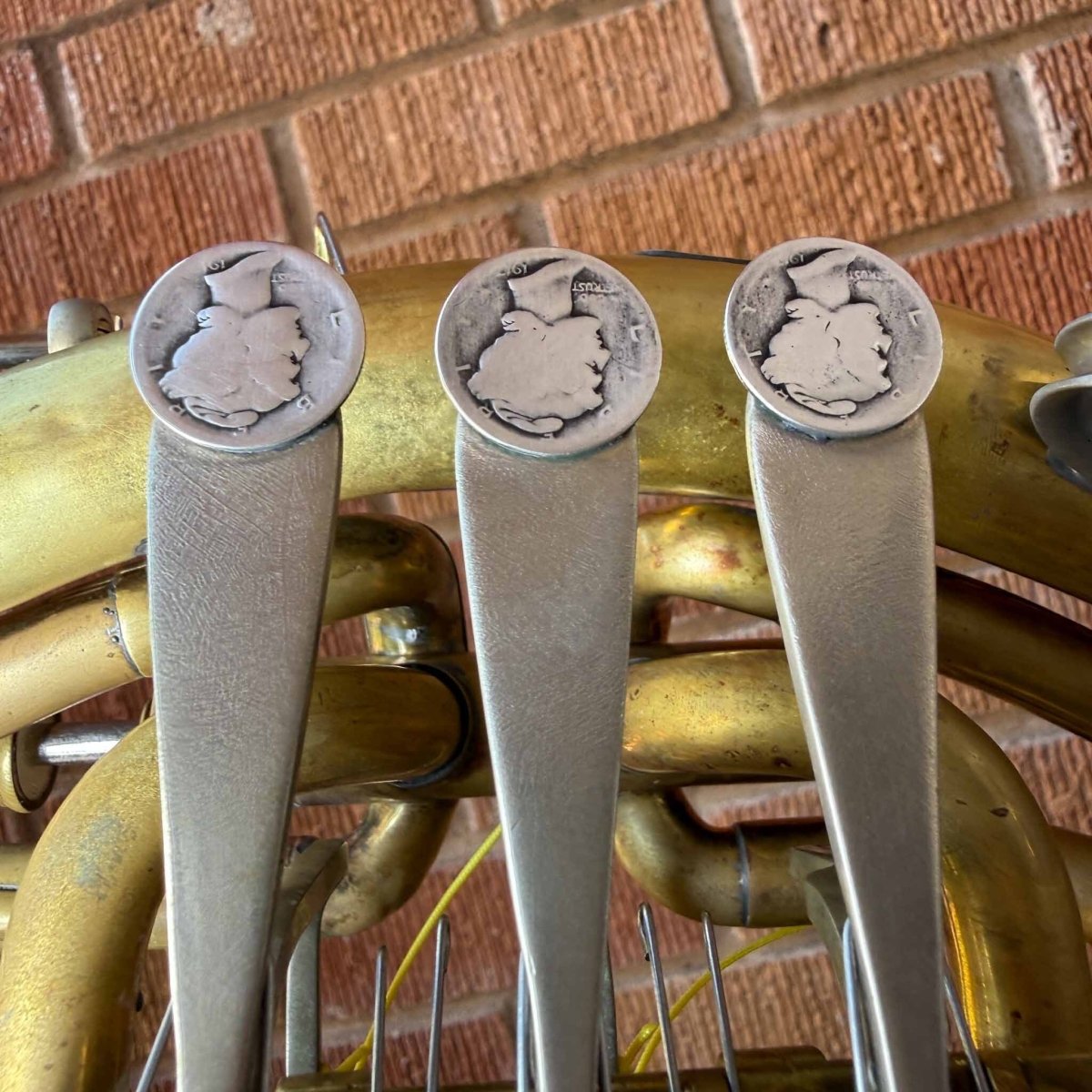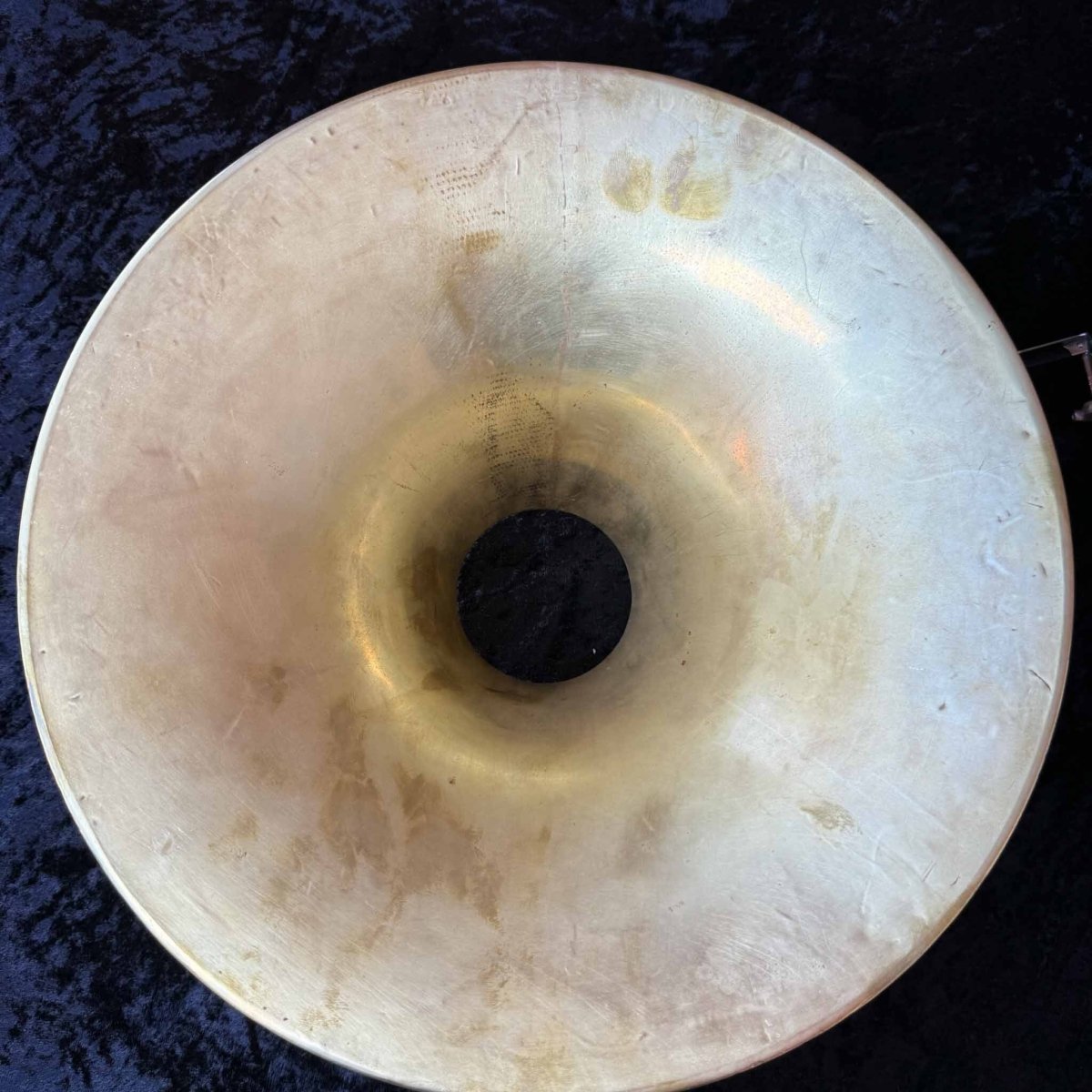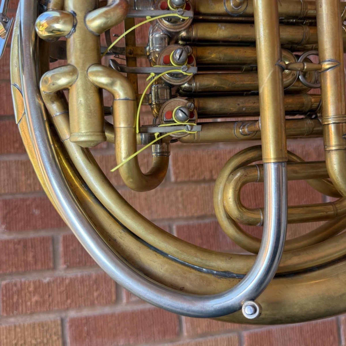 With historic horns of this vintage, it has picked up some well-placed patches along the way, and has some minor dings and signs of repair. We noted that the F main tuning slide fits loose, so using heavy slide grease can improve the overall compression to 1-2. The slide legs are seamed construction so they cannot be expanded to effectively tighten this fitment.
