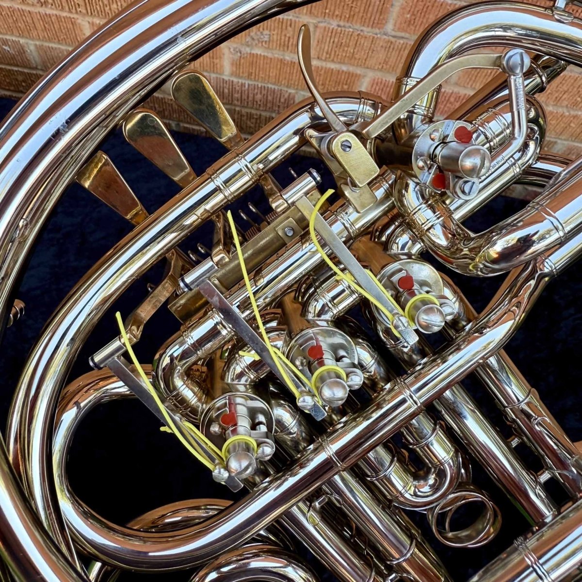 The Conn 8D French horn was borne out of the collaboration between powerhouse horn-playing brothers Arthur, Jack, and Harry Berv and the innovative engineers at C.G. Conn, Ltd. Introduced in 1938, the Conn 8D cemented the tradition of large bell, all nickel silver, Kruspe-wrap French horns in the United States. Quickly becoming the instrument of choice for the Cleveland Orchestra, Philadelphia Orchestra, and the New York Philharmonic, the sound of the Conn 8D has also been heard by billions of people worldwide in Hollywood film scores.