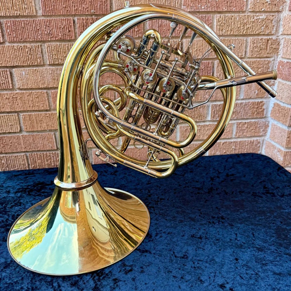 A great triple horn at a great price! Handmade in Germany about 10 years ago, this Finke horn design retains all of the benefits of a double horn, including full-size F and Bb sides and a longer leadpipe which maintains intonation.