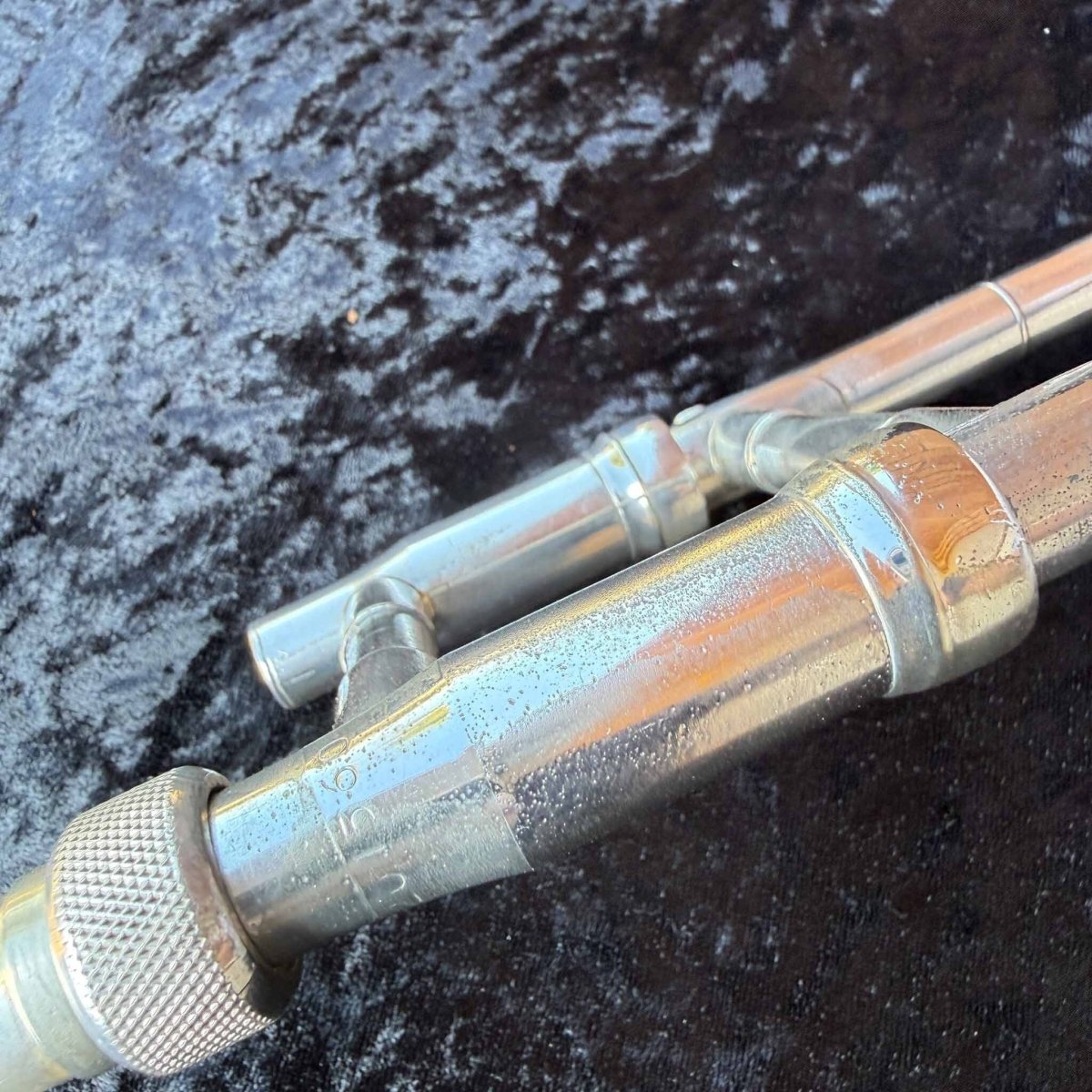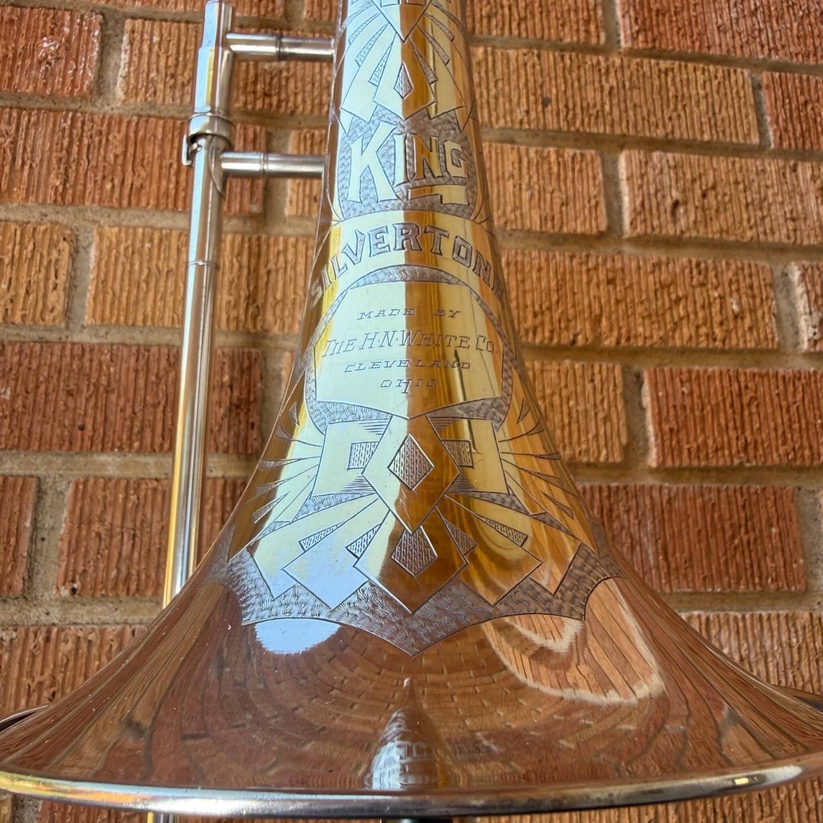 Additionally, unlike most surviving King 2b or Silver Tone models, this example has no wear-through on the inner handslide stockings, and includes the original counter-weight and case!