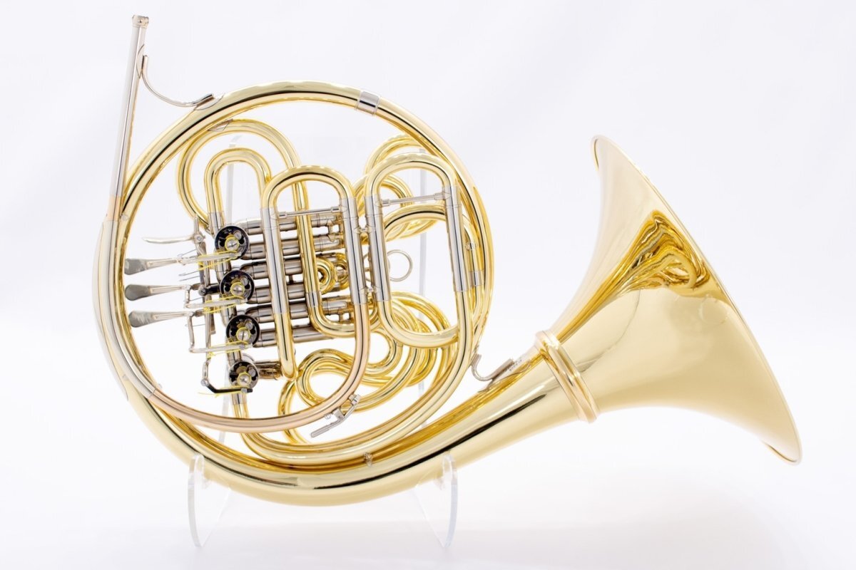 A modified Geyer-style semi-professional model double French horn in F/Bb.