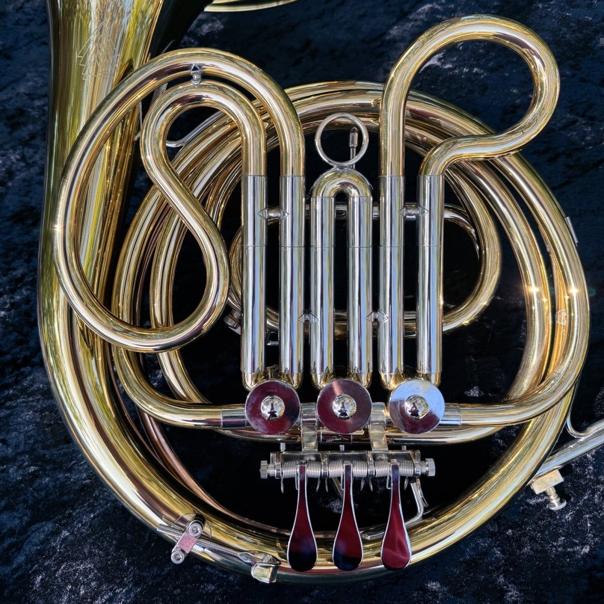This single horn features an lyre/screw-style attachment on the leadpipe to accept a compatible hand crutch or further ergonomic attachments. Also featuring an extended mouthpiece receiver over a gold-brass leadpipe, offering superior durability and protection against wear and deterioration, making it a robust choice for students and professionals alike.