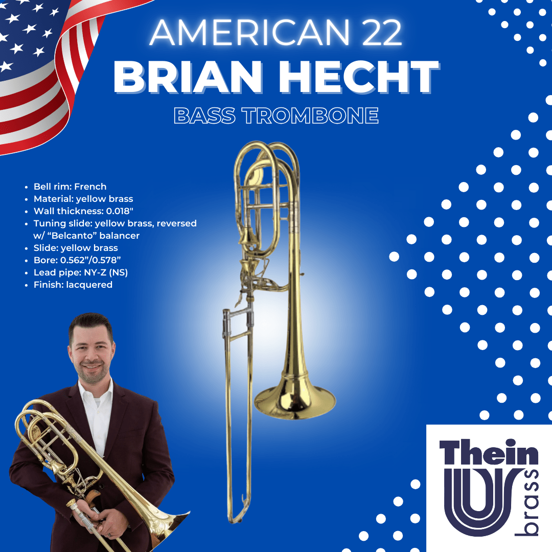 Hand-crafted in Bremen, Germany, the Thein “American 22” Brian Hecht model pairs orchestral authority with remarkable agility. Developed in collaboration with Brian Hecht, it offers the expansive, American-style breadth many sections demand—anchoring tuttis with a dark, unified core—while remaining responsive enough for solo and chamber work. The valves feel natural and even, helping legato lines stay connected and low-register passages speak immediately. Color palette is wide: rounded warmth for lyrical moments and incisive clarity when the texture thickens. Articulation stays clean at all dynamics, and the instrument’s balance makes extended rehearsals comfortable. If you’re seeking a bass trombone that projects confidently without losing nuance, the American 22 provides a refined, professional voice with the craftsmanship Thein is known for.