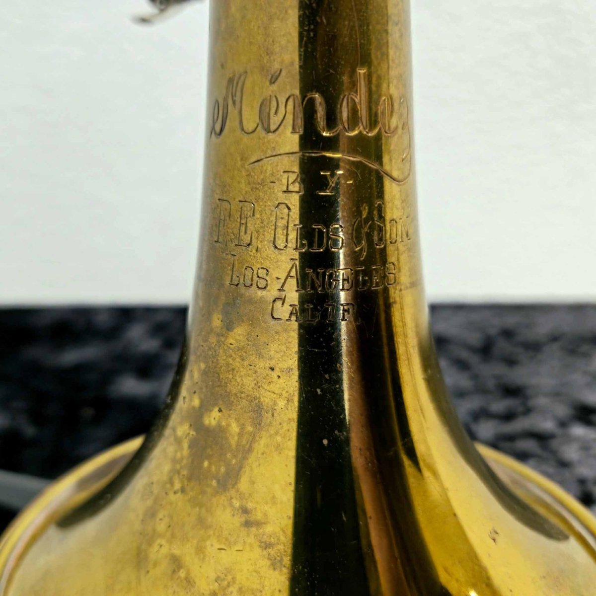 After years of development alongside Rafael Mendez, Olds built a trumpet modeled after his French Besson, with unique features such as lightweight sculpted braces, rounded slide ferrules, and other French design elements not found on any other model. When Olds introduced the new Mendez model in 1952, they only made 1,000 of them. This can be confirmed with serial number lists within the Olds Register, as no other instruments besides Olds Mendez trumpets were produced between serial numbers 86004 and 86999.