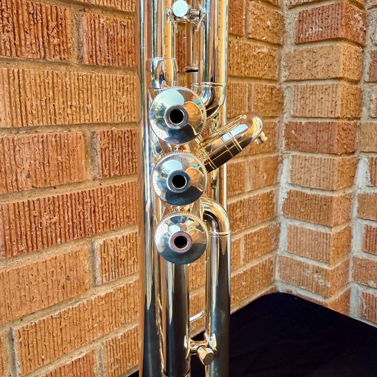 Otherwise like-new, we noted one pin-sized silver plating imperfection on the valve casing, and one scratch on the end of the 3rd slide. No other dents, damage, or major signs of use.