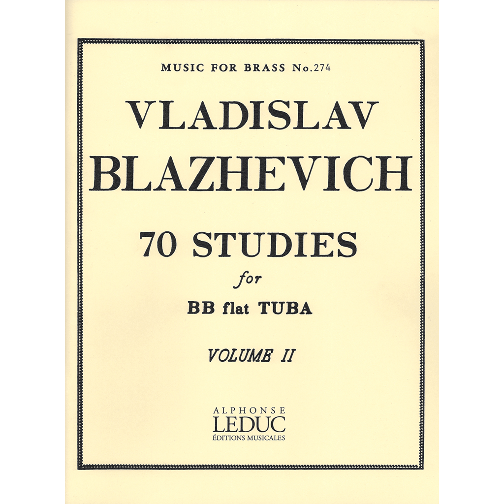Edited by Robert King and published by Alphonse Leduc, 70 Studies for B flat Tuba – Volume 1 by Vladislav Blazhevich contains the last 28 studies out of 70. These studies do not correspond to a method for tuba and it is generally understood that 70 Studies are actually inspired from another piece of work from Blazhevich: Clef Studies for Trombone, even though 13 of these 70 studies did not appear in it. They were not transposed for tuba but adapted for this instrument. These studies have become part of the basic teaching methods and these books are some of the most-mentioned study books for tuba which became very popular. While they help to develop tuba techniques, they can be used by different age ranges and different skill ranges.
