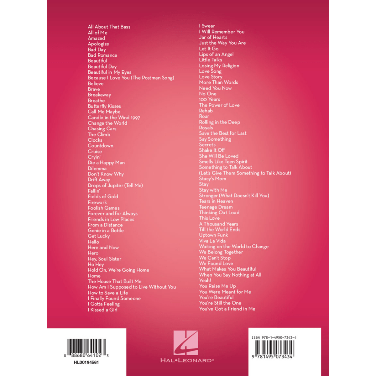 This massive collection will keep instrumentalists busy with 101 pop hits to learn and play! Songs include: All About That Bass • All of Me • Brave • Breakaway • Call Me Maybe • Clocks • Fields of Gold • Firework • Hello • Hey, Soul Sister • Ho Hey • I Gotta Feeling • I Will Remember You • Jar of Hearts • Love Story • 100 Years • Roar • Rolling in the Deep • Royals • Say Something • Shake It Off • Smells like Teen Spirit • Uptown Funk • When You Say Nothing at All • and more.