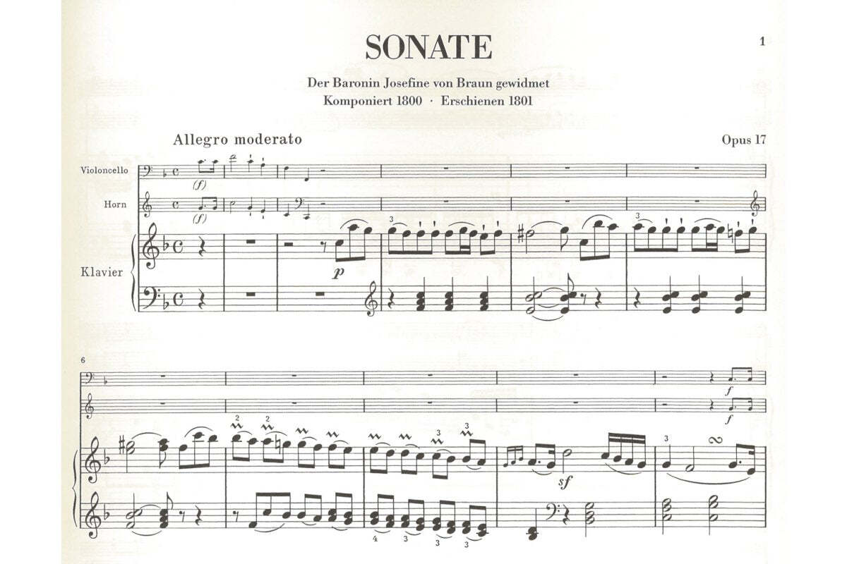 The sonata was originally composed for the virtuoso horn player Giovanni Punto. Upon hearing it performed, a Hungarian critic wrote, "Who is this Beethover (sic)? His name is not known to us. Of course, Punto is very well known."