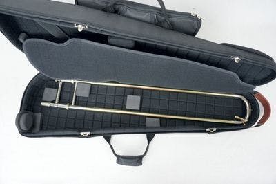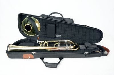 MB trombone cases are designed to adapt to different sizes of trombones. The EVA parts and cushions have velcro, so they can be positioned in order to fit most instrument sizes properly.