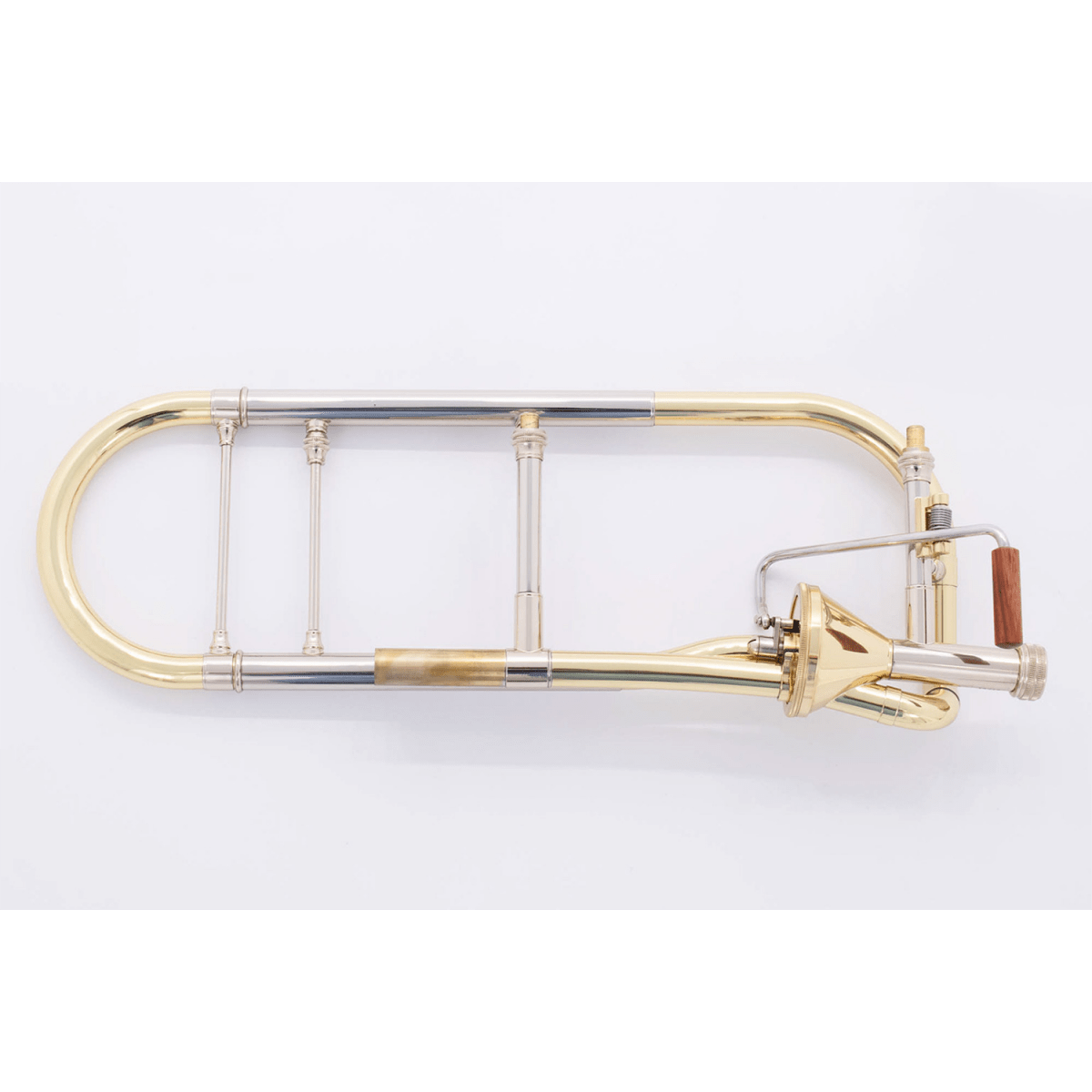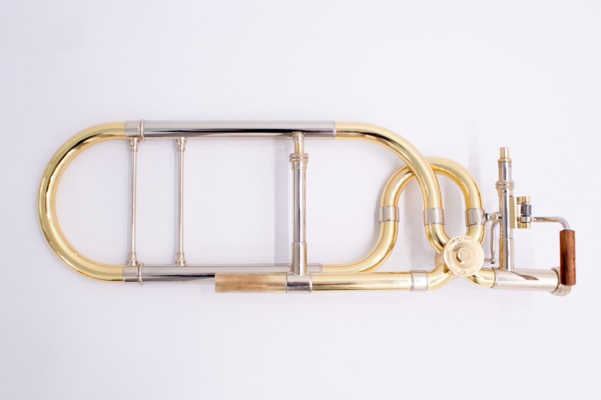 Shires' newly patented valve design. This valve utilizes two valves, each with only one wind-way that rotates 120 degrees. As a result, the bends going into the valve are more gradual, the two valves alleviate any bumps in the sound or in air flow when the valve is engaged, and the instrument feels more open and responsive. This valve features quick, light action and a short throw. The Shires Twin Valve is our latest endeavor in creating a state of the art orchestral trombone.