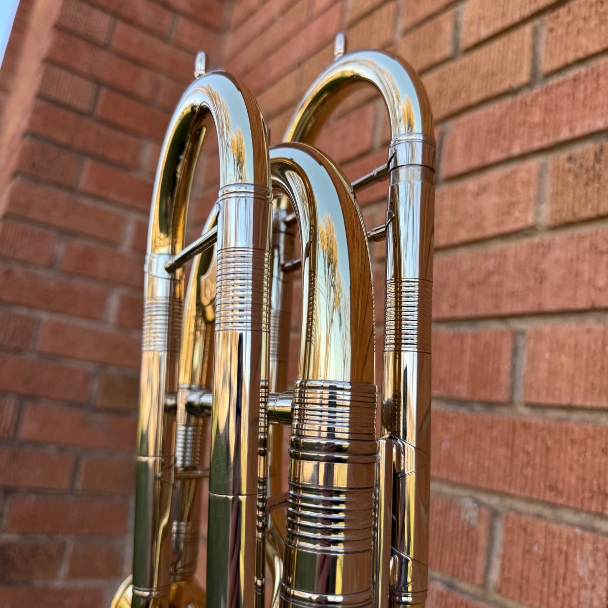 The THEIN Bass Trombone “Universal” model has been continuously developed together with Zachary Bond (Hong Kong Academy for Performing Arts) since 2010. Their idea was to combine the THEIN-Sound with the easy playability of the American trombone construction. This example has minor scratches on the bell, from Thein at a show, otherwise brand-new!