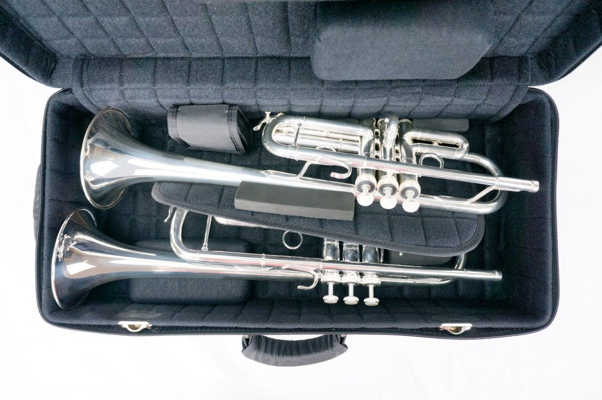 This model fits 2 piston trumpets tuned in Bb, C, D, Eb, F (or a piccolo or a cornet). It can fit both a standard Bb and C trumpet, but may not fit two Bb trumpet models of some brands. This case model is only available for piston trumpets.