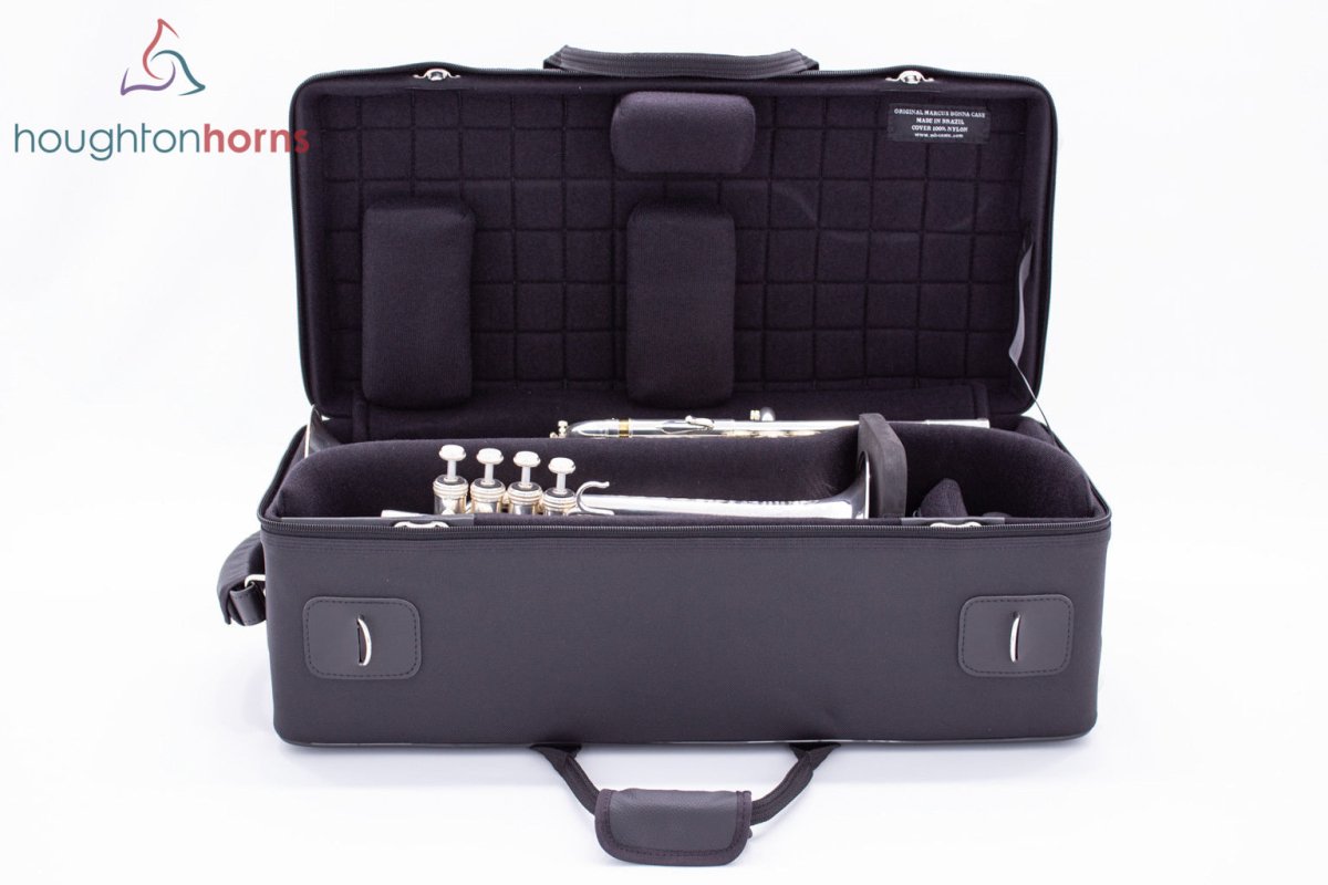 Marcus Bonna cases have been an extremely popular choice for brass players since 1991. All MB cases are lightweight, compact, and durable. Fiberglass (or carbon fiber) shell, nylon (or leather) exterior. High-quality stitching and components. Handmade in Brazil.