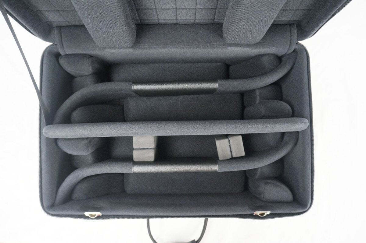 The case has a compartment in the front with space for sheet music and accessories. For extra room an additional detachable sheet music bag can be purchased.