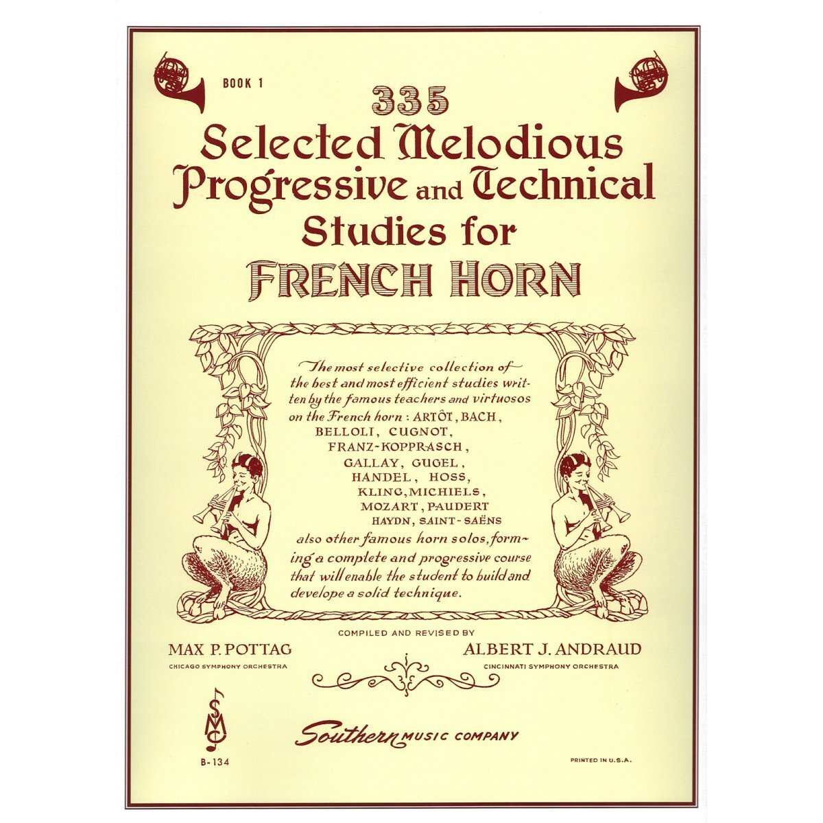 One collection of studies that is a must-have for every serious French horn player/student. Created by two of the finest virtuoso horn players of all time: Max Pottag, Chicago Symphony Orchestra; and Albert Andraud, Cincinnati Symphony Orchestra. The studies were chosen from the works of renowned teachers of the world over. Additional studies may be found in Book 2.