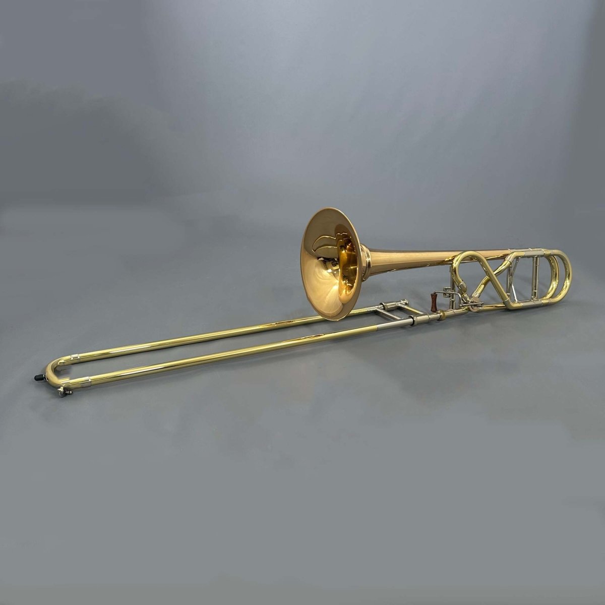 The Peter Steiner signature model, A47XPS features a detachable flare screw bell option with lightweight gold brass bell. Alongside the standard A47X, this developed through extensive research to achieve more balanced resistance and improved air flow throughout the valve section. The result led to the X wrap design, creating a truly even feel in and out of the valve range that extends throughout the most expansive registers. Performers demand an instrument that can be pushed to the limits, the A47XPS delivers that and so much more. New features also include the standard Artisan rotor with a shorter throw and improved transition between notes. Comfort is greatly improved with the elegant and ergonomic design of a contoured rosewood thumb rest. The .547” bore Artisan handslide features a brass cross brace on the inner slide and contoured waterkey, with newly designed threaded leadpipe receiver. This model includes three interchangeable brass leadpipes to allow players more options to fit their individual needs.