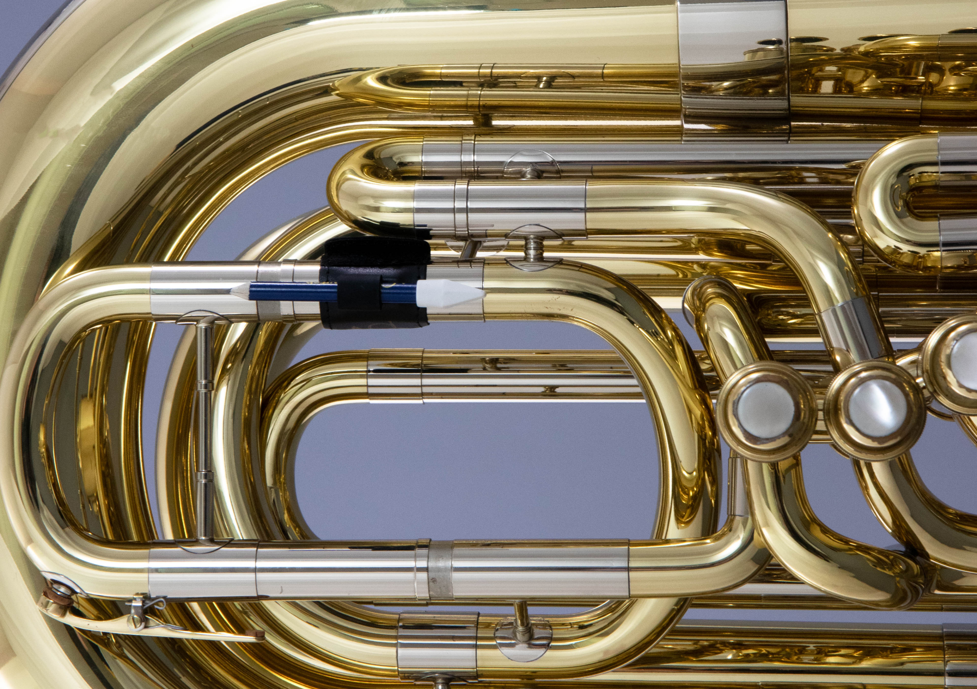 This product is the first new product of its kind made for all types of brass instruments, allowing you to remove and attach a pencil quickly. The innovative design won’t scratch or mark up the instrument like the other hard plastic options.