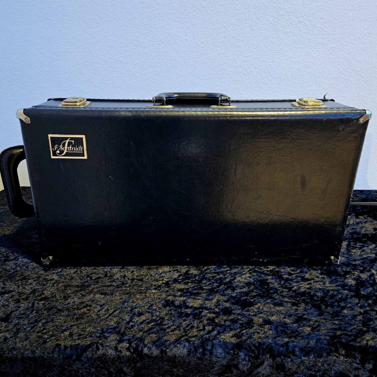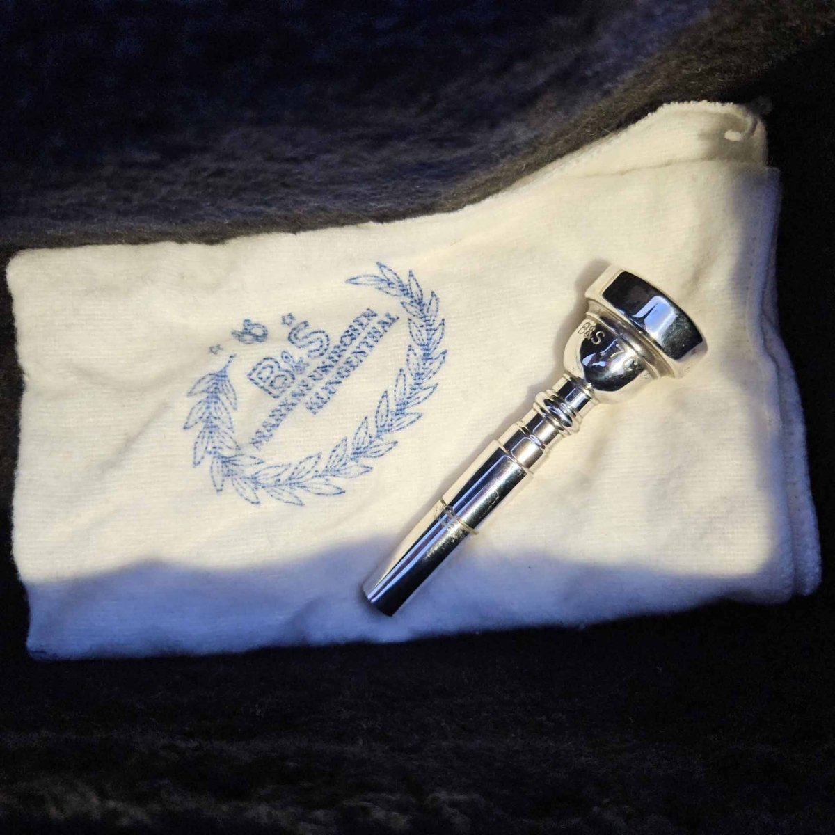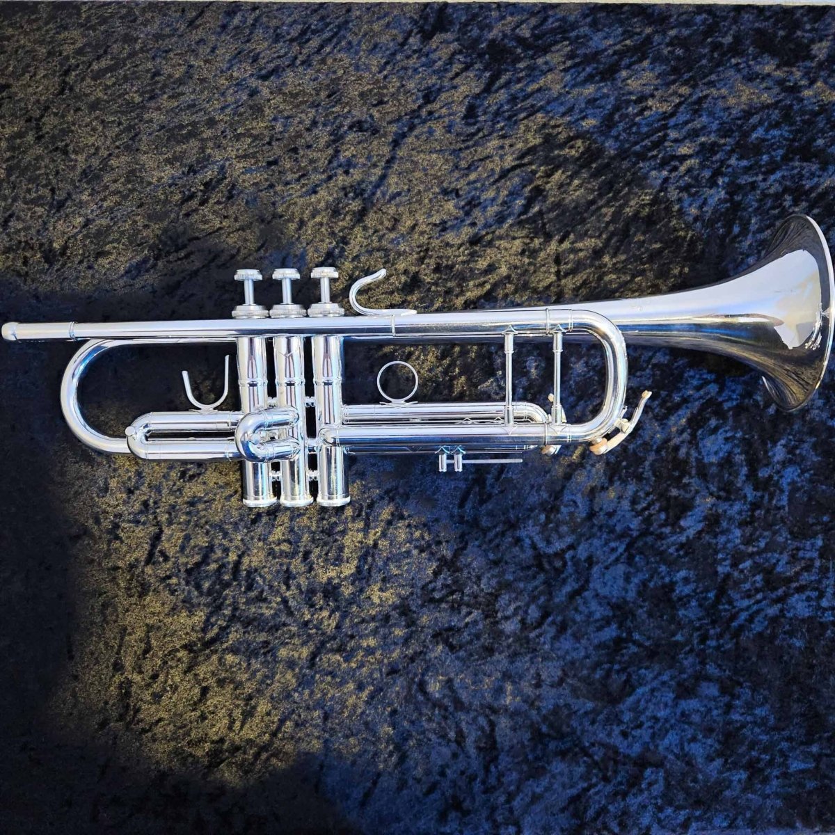 This is a professional trumpet model, sold under a local music store's brand. Made by B&S in Germany, it is comparable to the B&S Challenger 1 model, and includes the original B&S mouthpiece and polishing cloth. In nice overall condition, no signs of major damage or repairs, and the valves tested with great compression. A pro trumpet with a great tone, at a great price!