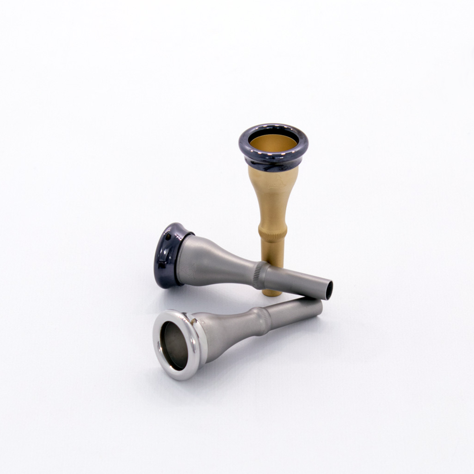 Houghton Horns mouthpieces possess a special external profile and a uniquely-balanced rim, cup, bore, backbore, and shank. The entire line was designed by Mark Houghton and Derek Wright and manufactured by Dave Houser. All Houghton mouthpiece cups (underparts) are made of either raw brass or surgical-grade stainless steel. Houghton mouthpiece rims are exclusively stainless steel, with optional H-kote. Houghton mouthpiece cups are available in four distinct models and a variety of configurations when paired with various rim diameters, contours and coatings. The intent was to design a line of mouthpieces that addressed the needs of real-world players by combining proven design concepts with the latest in technology and materials. Ultimately, the emphasis was on balance, focusing on the versatility and functionality that most modern players require. Between the four models any horn player, high or low, orchestral or commercial, solo or section, should be capable of finding a mouthpiece that provides a sense of comfort and identity.