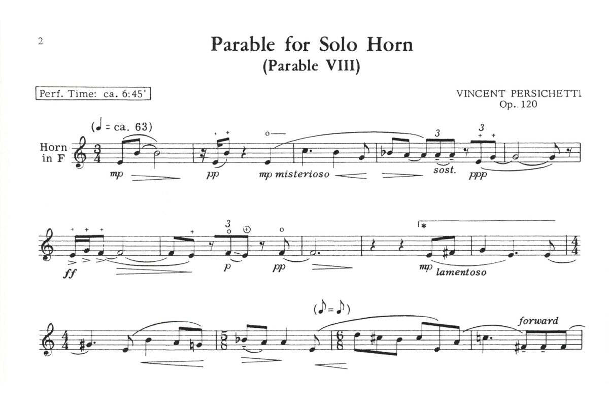 This piece is part of the 25 pieces composed by Vincent Persichetti (1915-1987), each entitled Parable for various instruments.