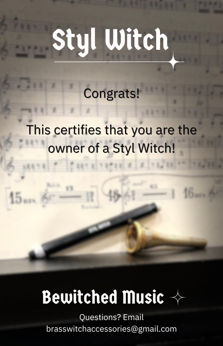 Designed by Met Opera Hornist Barbara Jöstlein Currie, Styl Witch is the newest product in the Brass Witch product lineup.