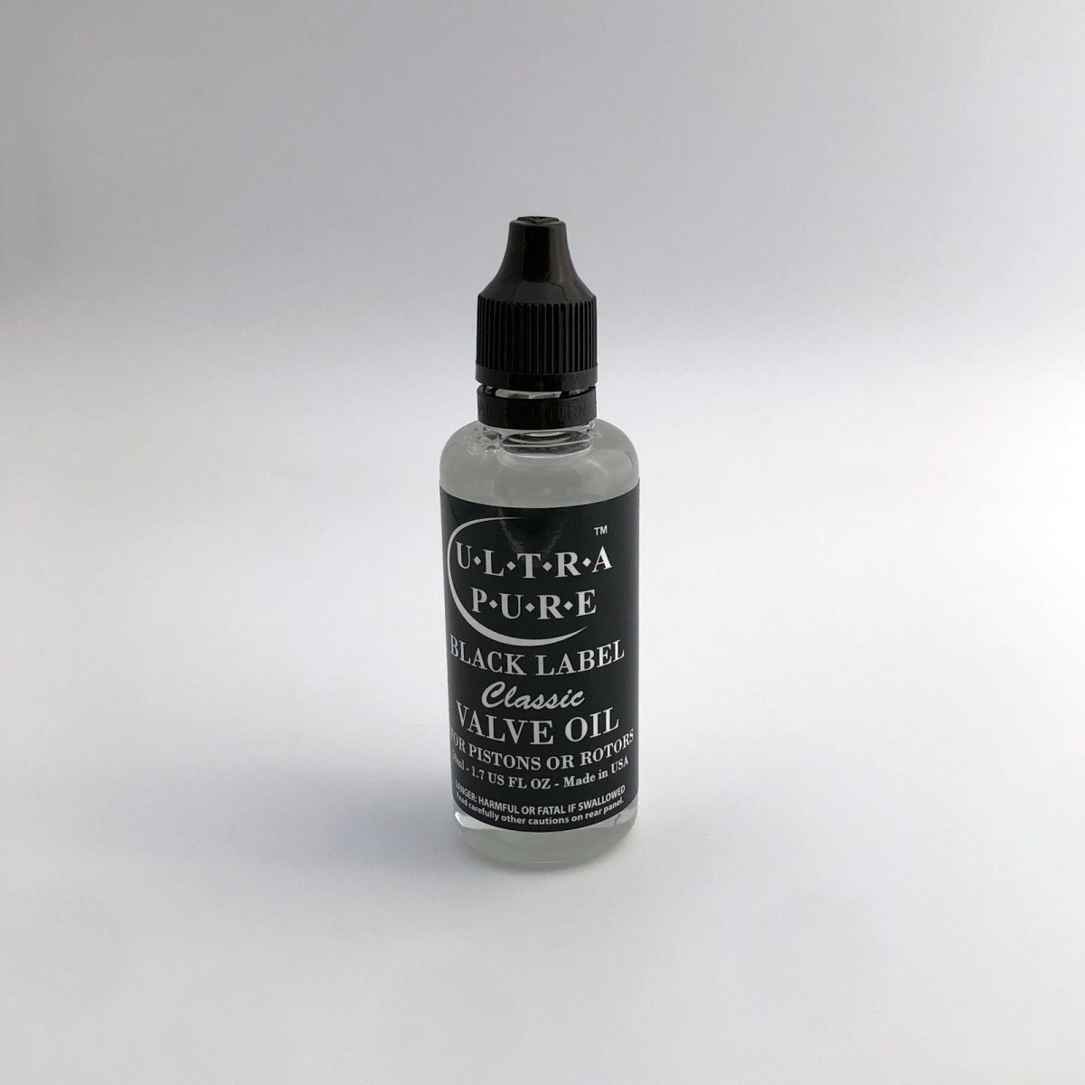 Ultra-Pure Black Label "Classic" Valve Oil is a little thicker than standard valve oil and is designed for older horns with worn pistons or rotors. The thicker oil helps fill in the space between the valve and the casing and allows the valve to operate without any sticking. If you have an older instrument with worn valves, give Black Label "Classic" a try!